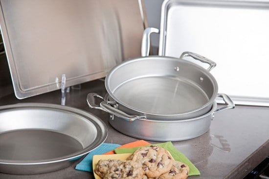 Aside from being solid, the pans have a sleek design with ergonomic handles that allow you to maneuver hot pans with ease. I’ve been using the 360 Bakeware line in my kitchen for six months, and my heart literally goes pitter-patter when I pull them out of the cupboard.