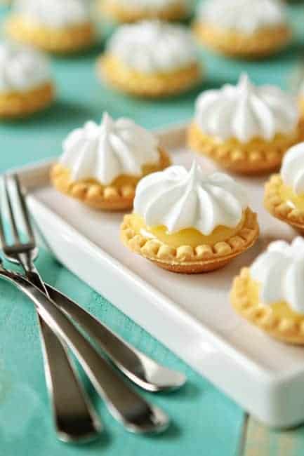 Mini Lemon Meringue Pies // Store bought tart shells and microwave lemon curd makes these mini lemon meringue come together in a snap.