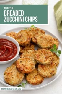 If you don’t have an air fryer, you could bake these breaded zucchini chips in the oven instead. They may not get quite as crispy and will take a little longer than in the air fryer, but they will still be delicious.