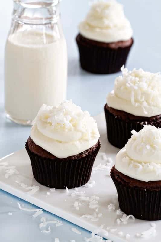 How can you possibly go wrong with half a mini Almond Joy tucked into a chocolate cupcake, anyway? Topped with vanilla buttercream and shredded coconut? You can’t, you just can’t.