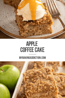 Most of the time, coffee cakes have a crumb or streusel topping, like in Cinnamon Coffee Cake, Make-Ahead Banana Bread Coffee Cake, and this Apple Coffee Cake.