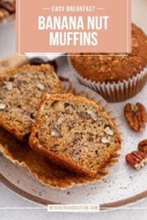 I recommend using pecans or walnuts in these muffins. The texture and flavor of both pair well with the tenderness of the muffins and sweetness of the bananas.