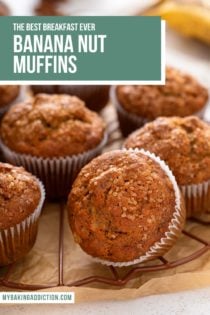 That’s why this recipe uses 3 whole bananas and vegetable oil. This means you’ll get tons of banana flavor and the muffins will stay moist after baking.