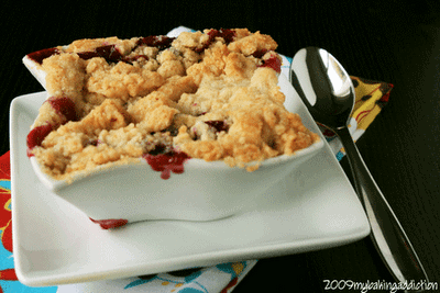 Have a scrumptious day! Now please excuse me while I go eat a ramekin full of fruity crumble goodness. Oh, and if you follow me on twitter, you know about my twitter only giveaway, so submit those cherry recipes!