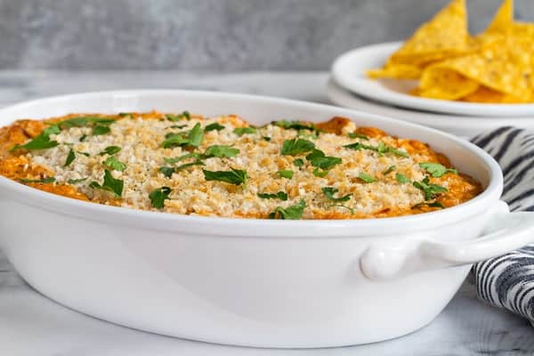 Not only is this dip incredibly delicious, it’s also super easy to make. With just a handful of ingredients and less than 10 minutes of prep, you’ll be on your way to snacking nirvana in no time. Just grab a bowl, mix everything together, spoon it into an oven-safe dish (even a pie plate works) top it with a little panko for some texture and bake it up to bubbling, cheesy dip perfection.