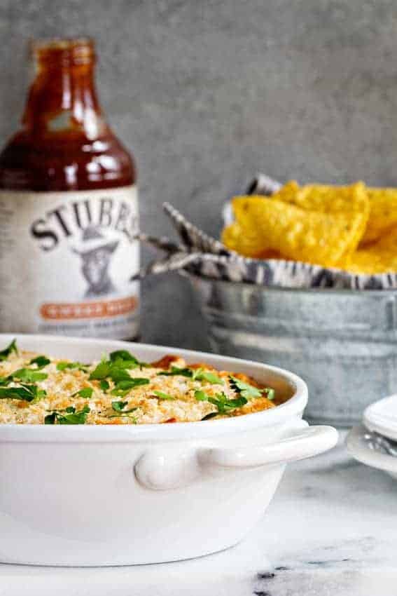 Grab some Stubb’s Sweet Heat Bar-B-Q the next time you’re at the store, because this dip is absolutely not to be missed. Besides that, you’ll want some on hand anyway – we’ve been slathering it on everything from chicken wings to kielbasa!