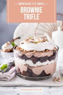 Since this brownie trifle needs to chill for at least 3-4 hours, it’s the perfect make-ahead dessert for a party or potluck.