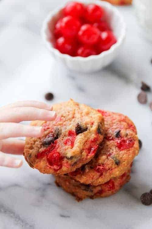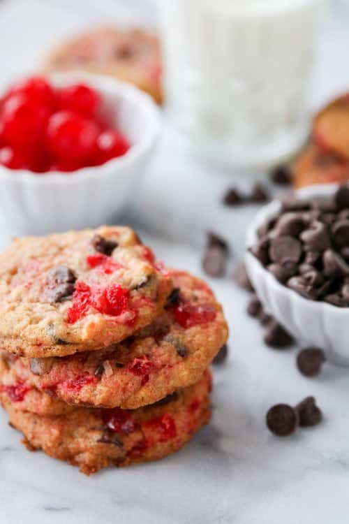 I love the combination of chocolate, cherry, and coconut, so these cookies are absolute perfection. The dough is even better if you let it chill for a few hours so the flavors can mingle, so if you’ve got the time, I highly recommend it!