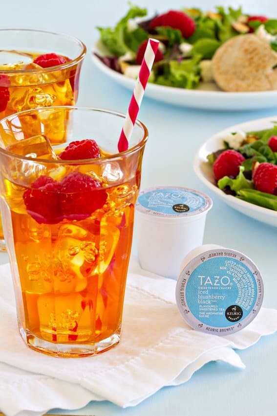 All you need are some mini croissants or pita breads, easily found at most grocery store chains, plus fresh and flavorful chicken salad, and the best iced tea I’ve had in a while – Tazo® Iced Tea K-Cup® Packs in Sweetened Iced Blushberry Black®.