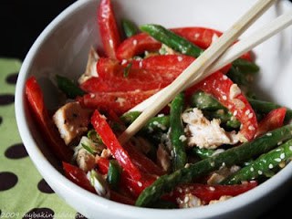 I love to cook, but not as much as I love to bake. When I came across the Barefoot Bloggers group, it immediately got my attention because I love me some Ina Garten. However, I was apprehensive about joining the group due to time constraints, but once I realized this was only a bi-weekly group I was in! This week’s recipe for Chinese Chicken Salad was chosen by McKenzie of Kenzie’s Kitchen. I truly enjoy Asian flavors so I figured this would be amazingly delicious! Not to mention the abundance of fresh produce in the recipe is perfect for spring. You can honestly whip this up in no time flat especially if you take a shortcut and use a roasted chicken from your local market. The only modification I made was that I decreased the amount of peanut butter in the dressing. If I am keeping it real, this recipe was not a fave of mine, in my opinion it was mediocre at best. Although I thought it looked beautiful, I do not think this will make it into the rotation at my house. I could not decide what turned me off…maybe the peanut butter, or maybe the sesame oil, but either way this was not a winner in my book. However, this is a highly rated recipe on foodtv.com, so it may please your palette more than it did mine! Even though this recipe did not rank high on my scale of deliciousness, I really look forward to cooking with the Barefoot Bloggers!