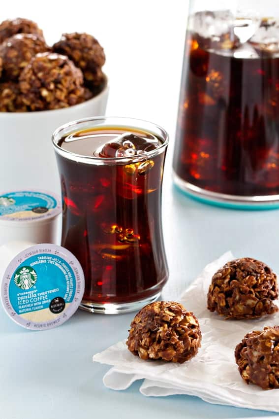 I’m totally crushing on Starbucks® Iced Coffee K-Cup® Packs in Vanilla Sweetened right now, and it’s the perfect flavor pairing with these granola bites.