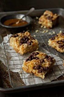 I have a life-long obsession with all things caramel. From ice cream to candies, if there’s caramel in it – I’m all about it. Toss on a crumbly topping and a sprinkling of chocolate chips and this girl is diving in head first.