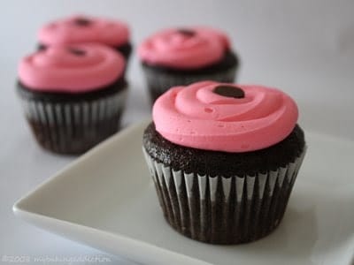 I get bored with things VERY quickly and I have found myself getting bored with cupcakes. So, I decided to start branching outโฆattempting to create delicious cupcakes other than the usual chocolate, vanilla, etc. I used a delicious chocolate cake recipe that I originally posted here, but I topped these cupcakes with a White Chocolate Raspberry Cream Cheese Frosting making them anything but ordinary. I love the combination of chocolate and raspberry and what is better than delicious cream cheese frosting?