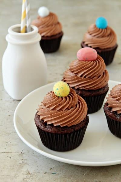 Although Chocolate Malt Cupcakes may not be the most ingenious idea I’ve ever had, I knew they would be the perfect Easter dessert for my malt loving dad.