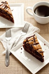 This Chocolate Peanut Butter Torte recipe is easy to prepare and it’s the perfect dessert to share with a crowd. A thick, dense, brownie like cake layer pairs perfectly with a creamy peanut butter glaze to create a seriously decadent dessert. A tiny sliver is enough to send someone into chocolate-peanut butter bliss. Be sure to have a pot of coffee or a gallon of milk on hand, because trust me; you’re going to need it!