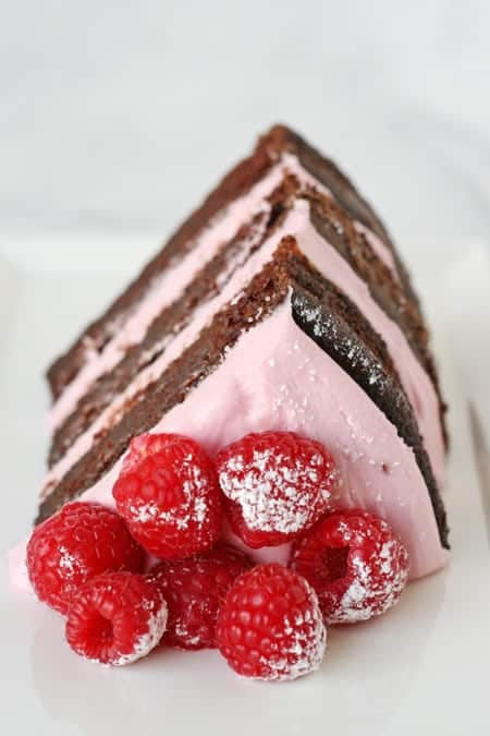 With Valentine’s Day on the horizon I thought a pretty cake would be very fitting. This Chocolate Raspberry Cake is beautiful, delicious… and amazingly easy to put together!