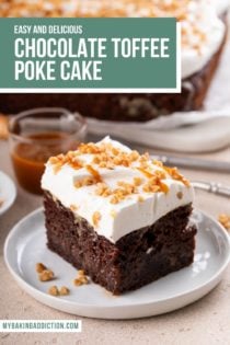 This chocolate toffee poke cake is the one that sparked this renewed love. I have seen some people call cakes with these same flavors “better than sex cake,” but I kind of hate that name. So I just choose to call it chocolate toffee poke cake!