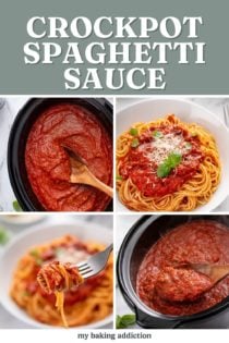 The majority of the time needed for the recipe is hands-off time, so you’ll only need a few minutes to toss the spaghetti sauce into your crockpot in the morning.