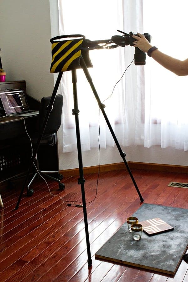 Since I shoot my photos with natural light, my set up is pretty mobile. I shoot wherever the light is best, at the time of day that I need to shoot. Sometimes that’s on the floor of my home office, sometimes it’s on my dining room table, and sometimes it’s in my garage for the whole neighborhood to see.