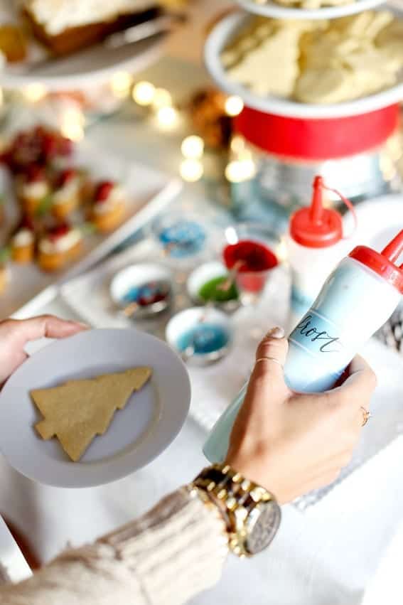 Around here, cookies are synonymous with the season, but if I’m being honest, spending hours on end baking and decorating them by myself can be pretty boring even with Christmas tunes blaring in the background. That’s why I love the idea of hosting a DIY Cookie Decorating Station.