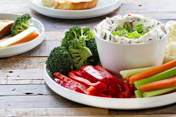 Even though we had everything taken care of, my step-brother’s girlfriend, Jen, brought a vegetable tray with the most amazing dip. It was whipped, creamy and the perfect companion to a load of fresh vegetables.