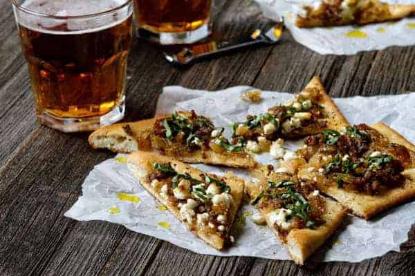 Sausage Pizza with Caramelized Onions and Goat Cheese