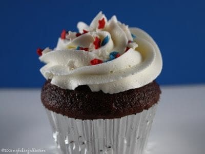 I hope everyone decided to get out and vote on Tuesday! I thought I would play it “smart” and head out to the polls before work to escape the long lines in the evening. Well, as it turns out, just about everyone in my precinct tried to play it “smart” as well. I arrived to my voting destination promptly at 7:00 am only to be greeted by a hoard of dreary eyed Ohioans in a line that stretched around a building. Again, since I was playing it “smart” that morning, I neglected to grab a jacket since the weather peeps said it would be an unseasonably warm 70 degrees. However, it was a crisp 55 degrees at 7:00 am and that my friends is the temperature that I stood outside in a long, seemingly never ending line for 1 hour. Now as though I did not have enough working against me with the temperature and the line, as luck would have it, I ended up smack in front of one of the most annoying human beings I have come across in my 29 years of life. Yes, you all know the type I am talking about, the loud, obnoxious know-it-all that thinks everything uttered out of their mouth is absolutely hysterical…the kind that laughs so loud at his/her own jokes you think they may hyperventilate! On top of his contagious laugh and charming wit (utter sarcasm) , he acted as though we were all uneducated voters and blabbed on about his views trying to persuade us to vote in his direction. Needless to say I was peeved after about thirty seconds! I ended up being a half hour late to work, which meant my cupcakes were the last to hit the bake sale table! I whipped these up on Monday night using…(GASP) a Duncan Hines boxed cake mix; however, I tried to redeem myself by topping them with homemade buttercream frosting and cute patriotic sprinkles.