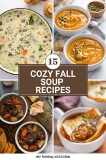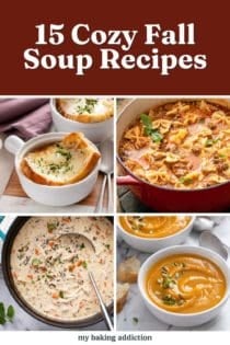 Check out these 15 cozy soup recipes and get your fall dinners lined up! For more delicious meals options for every season of the year, be sure to check out all of my dinner recipes.