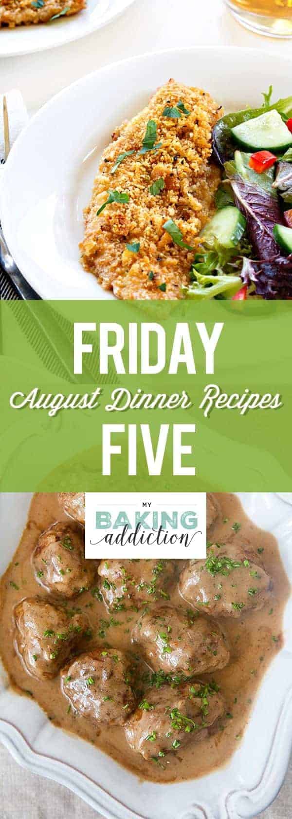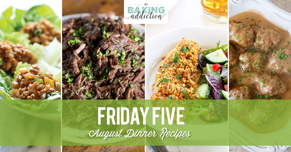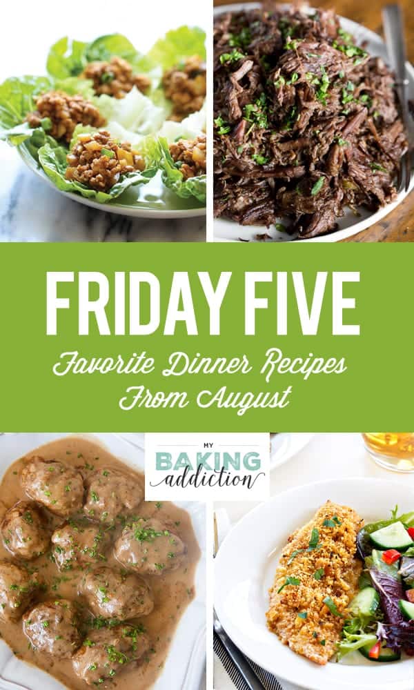 Today Iโm starting a new series that Iโm calling the Friday Five. The series will feature five of my favorite things from varying topics like recipes, cookbooks, cookware, beauty products, home decor, and I may even throw in some fashion items and toddler gear from time to time. But today, weโre starting out with our favorite dinner recipes from the month of August.