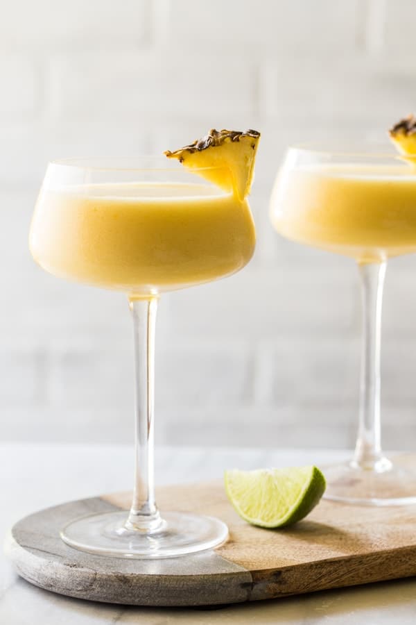 A Frozen Pineapple Mango Daiquiri is the ultimate hot weather cocktail: smooth, cold, fruity and not-too-sweet. Put them on the short list for your next summer night soirée!
