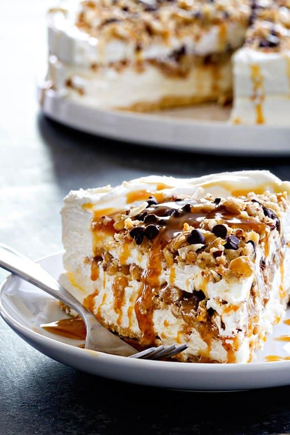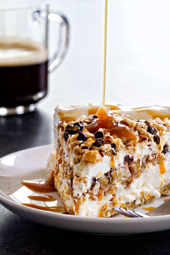 Frozen Samoa Pie is pretty much a chocolate-caramel-coconut lover’s dream. Layers upon layers of those delectable flavors, in one frozen treat!