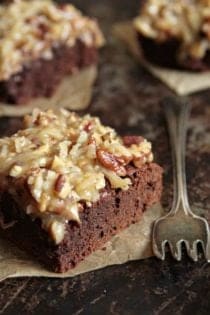 There’s something about dense chocolate covered in gooey coconut and pecan topping that just says Fall to me. Maybe it’s the autumnal colors, maybe I’m just crazy (really, there’s no maybe about it), but I thought you might like to make these on a random Monday night because… well, just because. Sometimes that’s the only reason you need.