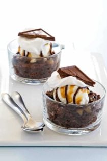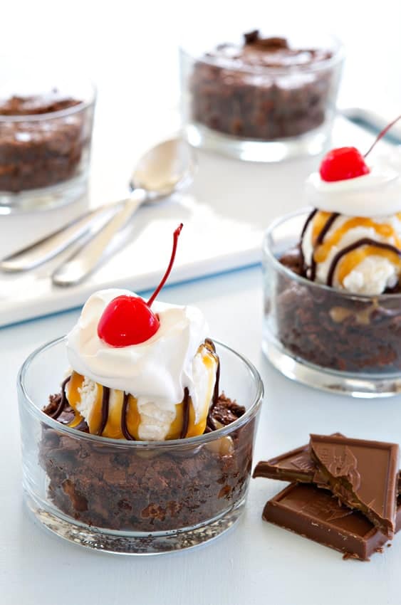 Serve each brownie up with one scoop of the purest vanilla bean ice cream you can find (bonus points for flecks of vanilla bean throughout the ice cream), and cover it all with chocolate and caramel sauces and a dollop of whipped cream.