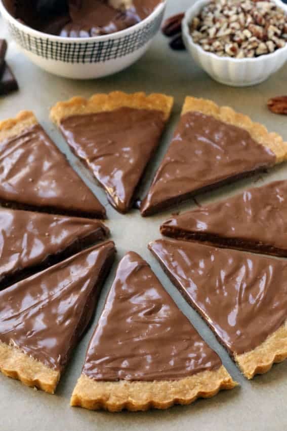 This easy gluten-free shortbread recipe is made in a tart pan and is dipped in chocolate for an extra special treat. So delicious!