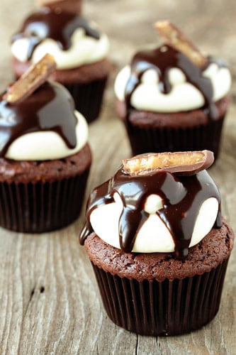 These Heath Bar Cupcakes went over famously and were just what the coworkers were harassing me for. I don’t know what they’re going to do all summer without their cupcake fix because tomorrow is my last day or work. Woo-Hoo! I’m so excited to blog full time for the summer and can’t wait to share delicious recipes and giveaways with you all summer long!