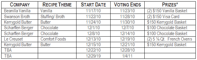 4.) Help spread the word about the recipe exchange when it goes live through your social media outlets such as Facebook and Twitter and encourage your readers to vote for your entry.