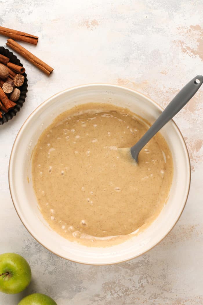 To start, mix the dry ingredients together: flour, salt, apple pie spice, and baking powder. Set this aside.