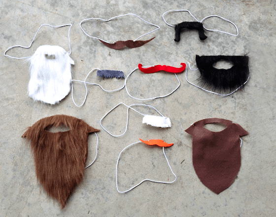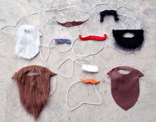 - Pin to the felt or fur and cut (the fur makes a HUGE mess… prepare yourself!) If you would like to make the mustaches firmer so they stand up more just cut two of each pattern and glue them together.
