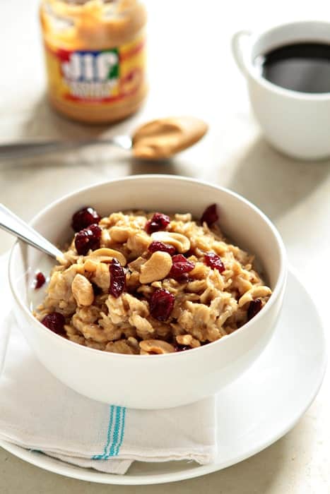 I’ve teamed up with Jif to Mix-Up Mealtime with their new nut butters. This Homemade Oatmeal with Cashews and Honey has quickly become one of my faves. It’s a cozy, Fall breakfast full of cashews, dried cranberries, Jif Cashew Butter, and honey, that keeps me full until my mid morning snack.