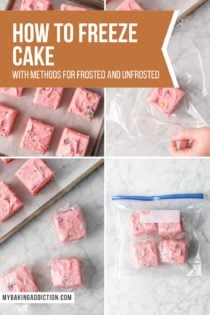 But there are some differences in how to freeze cake depending on if it’s frosted or not, whole or sliced. So let’s dive into how to tackle each of these.