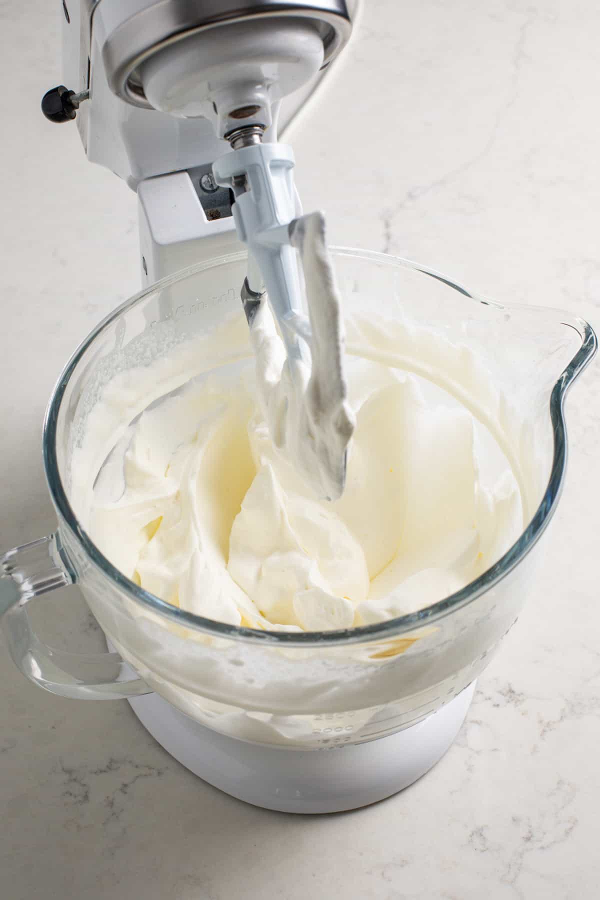 - Pour the cream into the bowl of a stand mixer fitted with the paddle attachment. Beat on medium speed for about 1 minute. Once the cream starts to thicken, increase the speed to medium-high and continue beating.