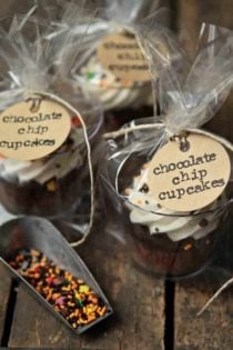 3. Gently place cups into cellophane bags. Add your tags to the twine or ribbon and tie the top of the bag.