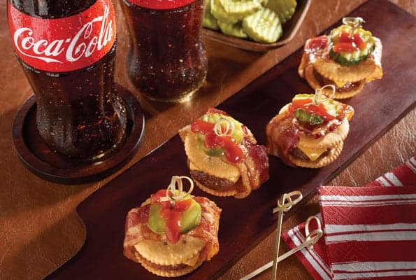Bacon-Wrapped Cheeseburger RITZwiches are a hearty game changer. Made with ground beef, bacon and cheese, these apps are sure to please!