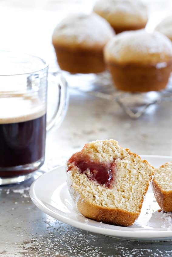 These muffins are so creative! Love the jam filling and the dusting of powdered sugar is lovely :) Pinning!