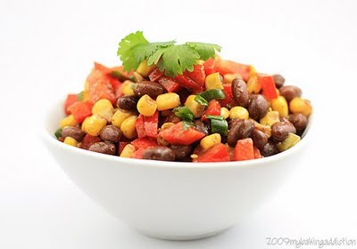 2. In a medium bowl, stir together black beans, red pepper, jalapeno, green onions and corn. Toss with vinegar and oil dressing, and garnish with cilantro. Cover, and refrigerate.
