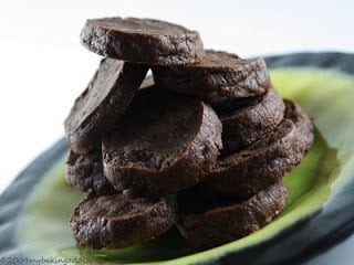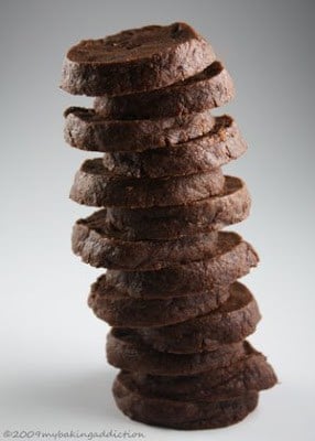 This weekโs Tuesdays with Dorie recipe is hosted by Jessica of cookbookhabit. Jessica chose Dorieโs recipe for World Peace Cookies found on pages 138-139 of Baking: From My Home to Yours. I have read a lot of blog entries on these World Peace Cookies and every time I saw one I thought of a bumper sticker that graced a car in my high school parking lot that read, โVisualize Whirled Peas.โ That was a slightly random thought, so back to the cookiesโฆfor the most part this is a well-liked chocolate cookie recipe, so I excited to give it a try. I read some complaints of the dough being crumbly and difficult to cut, so I decided to do some recipe manipulation. I increased the butter by 1 TBS and decreased the flour by 1 TBS. Once I whipped this super easy recipe together, I had no problems with the dough rolling into logs or it being too crumbly. I snagged a taste of the dough off my paddle attachment and I must admit, it was quite scrumptious! After I rolled them into logs, I chucked them into the freezer for about an hour. Once out of the freezer, I let them sit on the counter for 5 minutes and cut them into 1/2 inch slices. This process also went very smoothly and took about 3 minutes total. These cookies are incredibly easy and the end result is a super deliciously addictive chocolate gem that is sure to please! So grab a cookie, a glass of ice cold milk and visualize whirled peas!