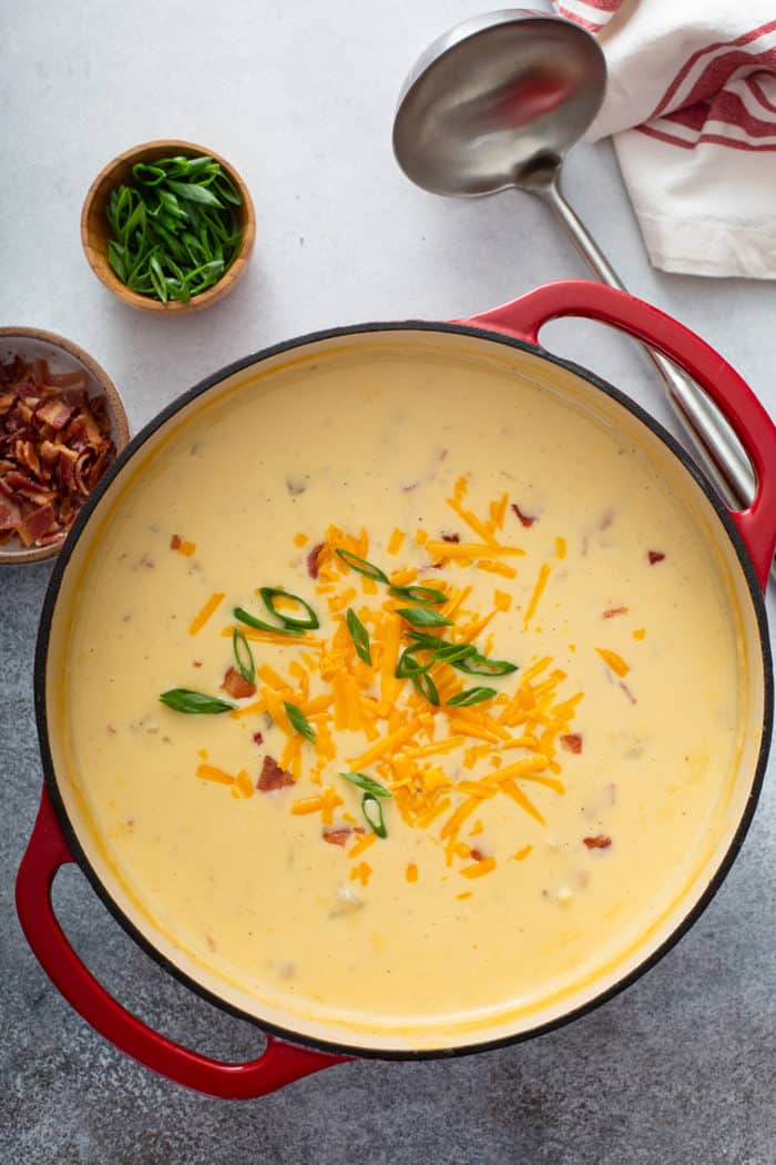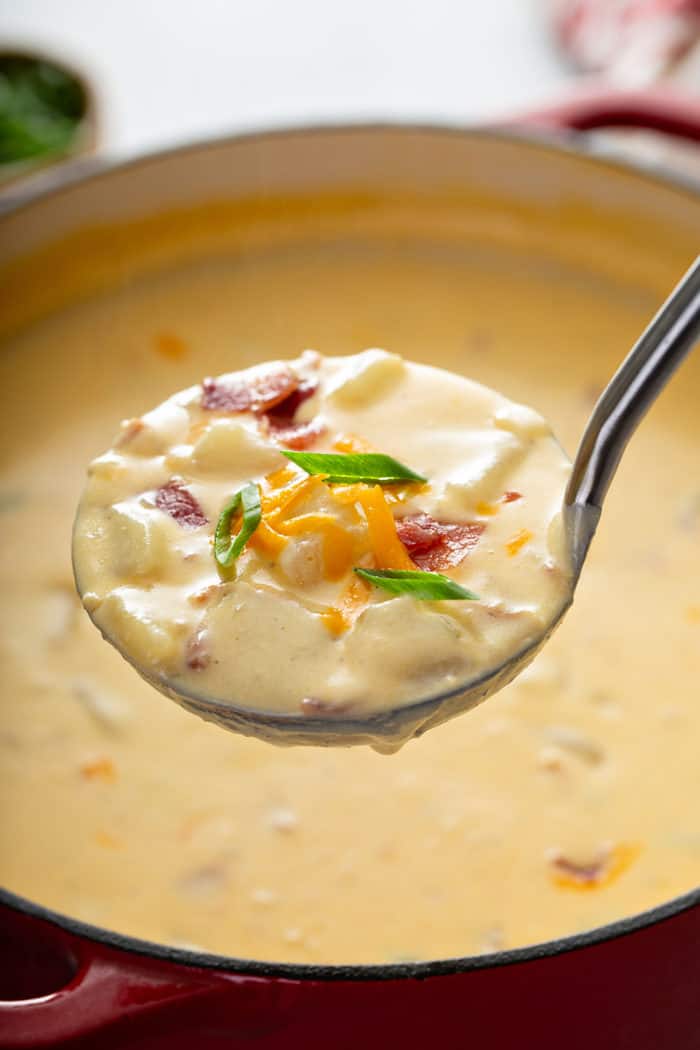 I mean, come on. Creamy potato soup with all of your favorite baked potato fixings mixed in? That’s the dream.