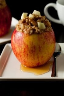 I served up the Apple Cinnamon Steel Cut Oatmeal in hollowed out apples, although this step is definitely not necessary, it certainly is fun, adorable and the perfect use for the abundance of fresh picked apples I have on hand. I adorned mine with a few chopped walnuts and a drizzle of pure maple syrup. This recipe makes about four servings, which is great because I was able to store the rest in portioned containers and eat them for breakfast for the following two days.