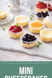Store mini cheesecakes in an airtight container in the refrigerator for up to 3 days. Wait to top them until just before serving.
