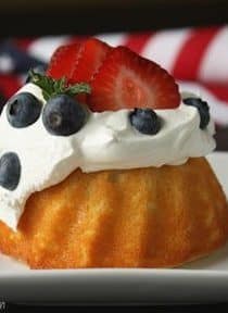 This morning I woke up and decided to whip together a little Fourth of July dessert that would be easy, but also delicious and festive. Since I am so in love with my mini bundt pans, I decided to use them yet again, this time for mini lemon pound cakes.